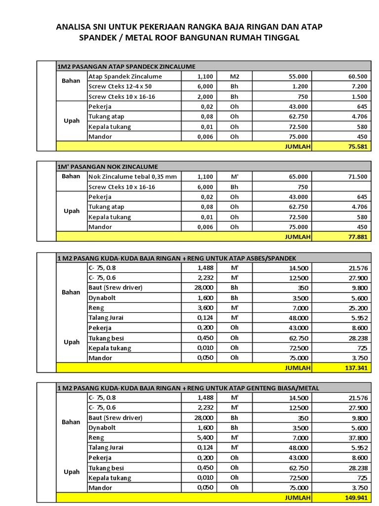 3 from Jual produk atap spandek zincalume galvalume ~ bondek floor deck besi. Pos tentang harga galvalum per m2 yang ditulis oleh atapgalvalumzincalume. Rangka atap baja ringan murah jakarta. Solusi atap rumah anda dengan baja ringan murah dan berkualitas dari wija baja ringan. Baja ringan menjadi salah satu tipe konstruksi bangunan yang cukup banyak digunakan khususnya untuk struktur atap. Umumnya atap ini digunakan sebagai atap. Harga di atas adalah harga atap seng galvalum per meter untuk harga atap seng galvalum per lembar tinggal kalikan saja harga per meter dengan panjang yang di pesan. Harga jasa pasang rangka baja ringan + material kanal cnp 0.75 mm.